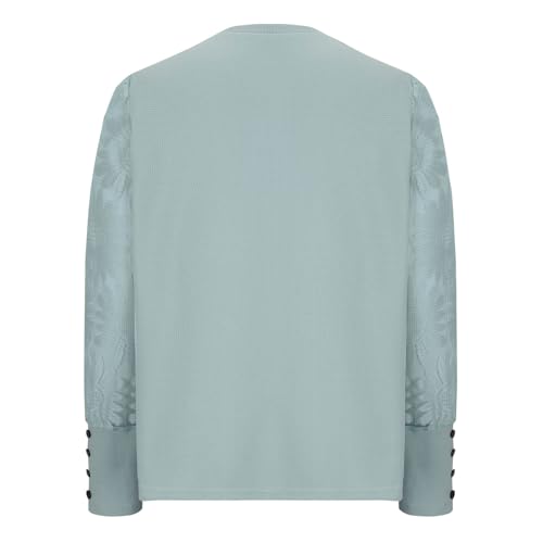 Waffle Knit Tops for Women Sunflower Lace Mesh Long Sleeve Sweater Crewneck Pullover Tee Shirt Lightweight Blouse 2