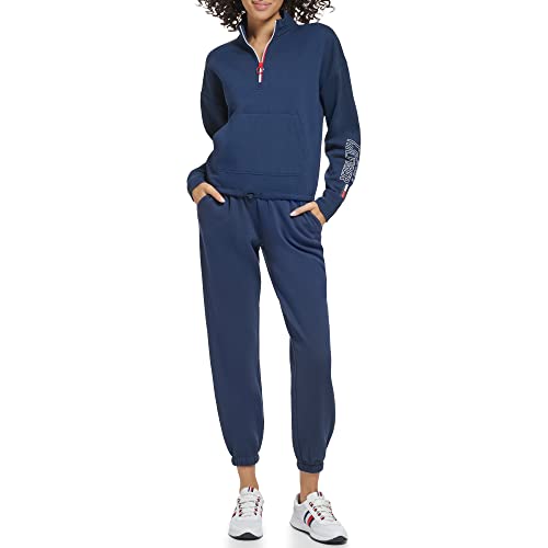 Tommy Hilfiger Women's Gathered Hem With Bungee Kanga Pocket Ring Puller on Zipper Quarter Zip 4