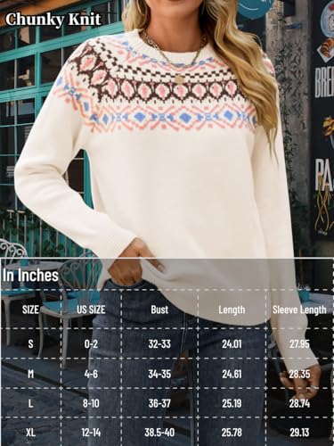 Fair Isle Pullover Sweaters, Crew Neck Chunky Knit, Winter Clothing Holiday, Vintage Crochet Fall Tops for Women 1