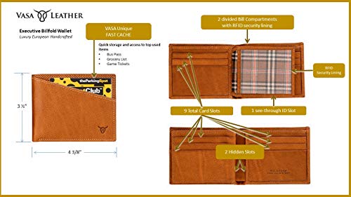 More information about Vasa Cognac Horizontal Top Grain Leather Wallets For Men - European Luxury Minimalist Bifold Wallet with RFID and NFC Blocking Credit Card Holder - Premium Mens Slim Bi Fold Pocket Wallet