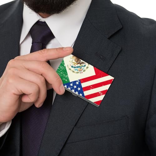 U.S.A Mexico Flag Business Card Holder Slim Credit Case Pocket Name Case Wallet for Men Women 3
