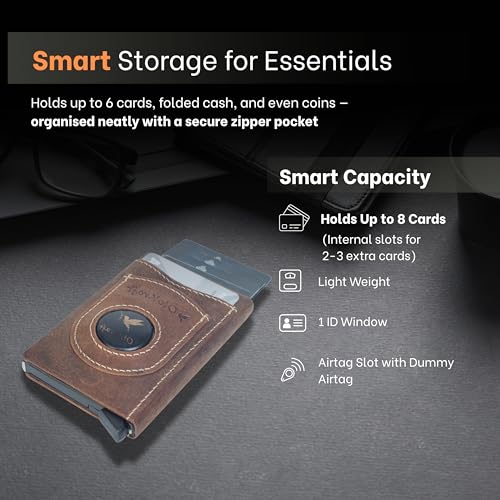 AirTag Wallet for Men – Pop-Up Card Holder RFID Blocking Slim Leather Wallet with Built-in AirTag Holder, Holds 8 Cards & Cash, ID Window, Internal Slots, Premium Full Grain Leather 5