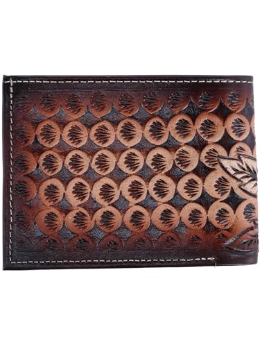 HOT ! CTM Men's Feather Tooled Leather Bifold Wallet, Brown