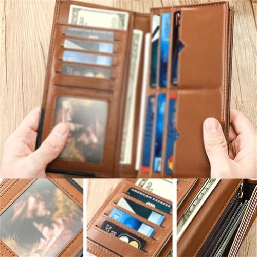 More information about Upliftjoys Cowhide Vintage Wallet,Mens Leather Bifold Long Card Wallets for Father Mens Big Checkbook Handcrafted Wallets (Red)