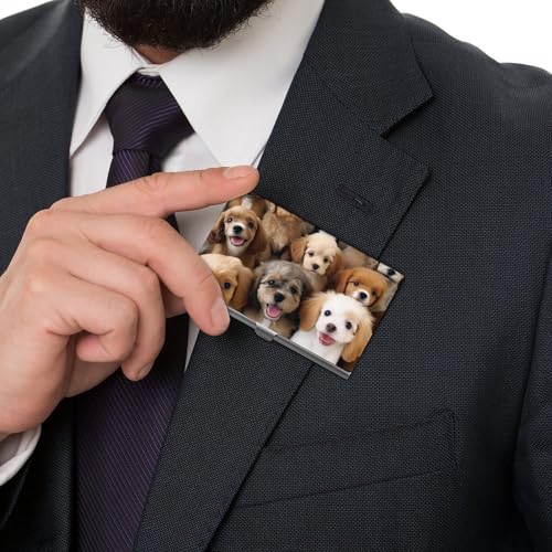 Slim Business Card Case for Men & Women, Pocket Metal Case, Cute Dogs Professional Aluminum Alloy Business Card Holders, Stylish Purse Name Cards Holder, Buckle Style Shut 7
