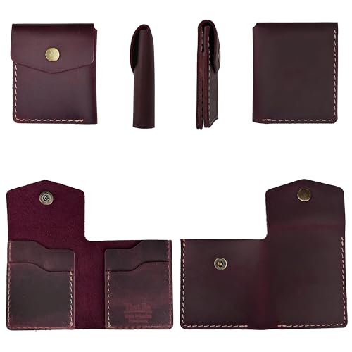 Wallet Card Holder for Men with 2 Card Spaces Handmade from Full Grain Leather Handmade Rustic Minimalist (Wine) 5