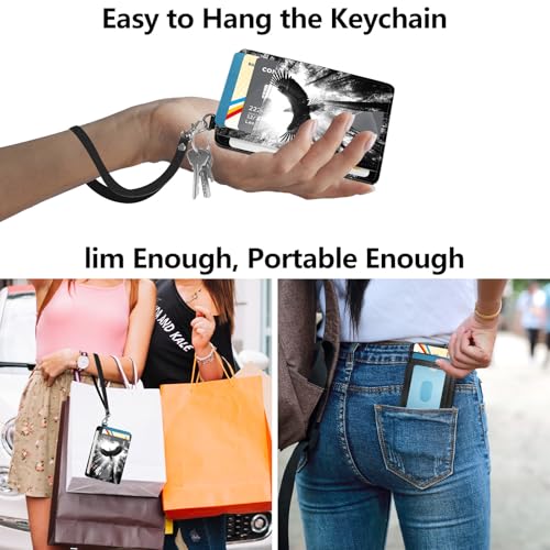 Slim Minimalist Wallet for Men Women Small Credit Card Holder Wallet Front Pocket RFID Blocking Wallets Travel Thin Card Case with ID Window Card Organizer & Wristlet,Forest Bald Eagle 5