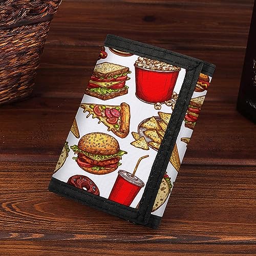 Burger, Hot Dog Pizza Slices Hamburger Sandwich Soda Donut on White Trifold Wallet, Stylish Purse With Keychain, Credit Pass Case Card-Holder for Crash Bills Receipts Women Men 5 x 3.3 x 0.2 Inch 5