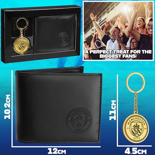 Manchester City FC Mens Wallet and Keychain Gift Set Black RFID Protected 1