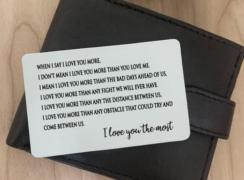 I love you the most Stainless Steel Engraved Wallet Insert Sentimental Keepsake Personalized Card for Him Husband Boyfriend Gifts Anniversary Birthday, Metal Men, Silver, 2x3 Inches 7