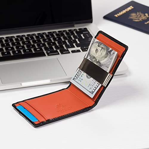 VISCONTI Slim Collection Chisel Leather Wallet RFID Blocked Tap and Go VSL57 (Black/Orange) 4