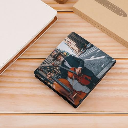 HOT ! Street Singer And Double Bass Player Wallet Elegant Leather Wallets with ID Window & 2 Card Slots, Slim Bifold Wallet for Men Women