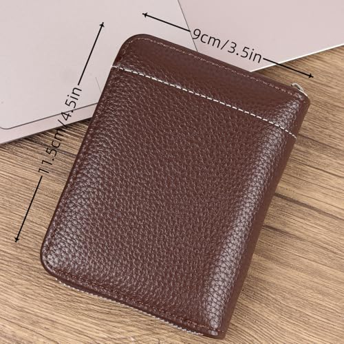 HOT ! RFID Blocking Slim Minimalist Leather Wallet with Zippered Coin Pocket | Slim Front Pocket Travel Organizer for Men & Women​ | Front Pocket Card Holder with Money Organizer (Khaki)
