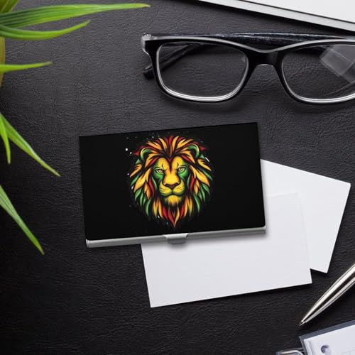Rasta Jamaican Lion Face Business Card Case Pocket Card Holder Slim Card Wallet for Men Women 5