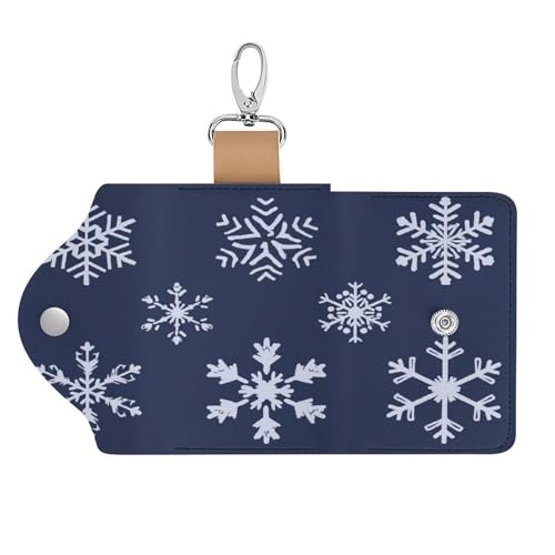Snowflakes Simple Minimalistic Navy Blue Key Holder Bag PU Leather ID Card Holder Keychains Case Cover for Men Women 3