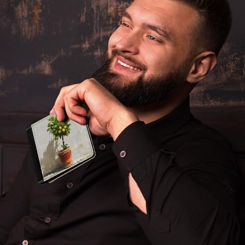 Lemon Tree in A Tall Pot Soft PU Leather Bifold Wallet, Coin Purse Credit Pass Case, Durable Card-Holder Slim Billfold for Men Woman Money Storage 7