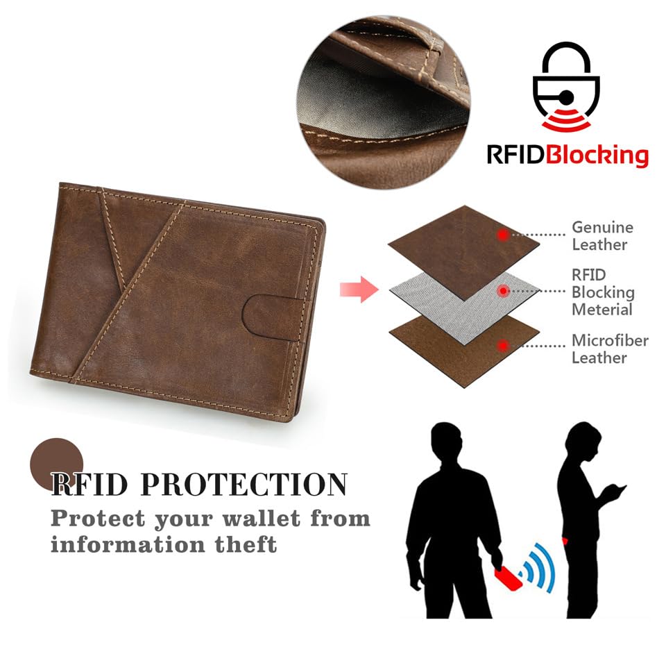 Retro Mens Genuine Leather Wallet RFID Blocking Ultra Thin Money Clip Design Personalized Gift (Coffee) 6