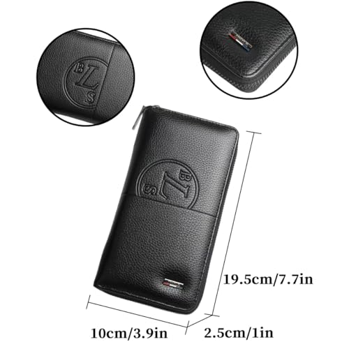 Men's Premium RFID Blocking Long Wallet with Detachable Chain - Bifold Design with Multiple Card Slots & Coin Pocket, Secure Travel Wallet for Everyday Use Gift for Him (Black) 7