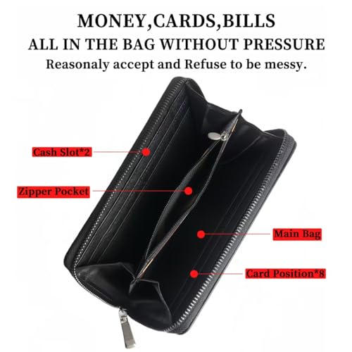 • Smart Organized Interior​ - ​Features 12 card slots, 2 bill compartments, and a zippered coin pocket​ to keep cash, cards, and coins neatly stored. No more bulky pockets or messy searches—everything has its place for effortless access.