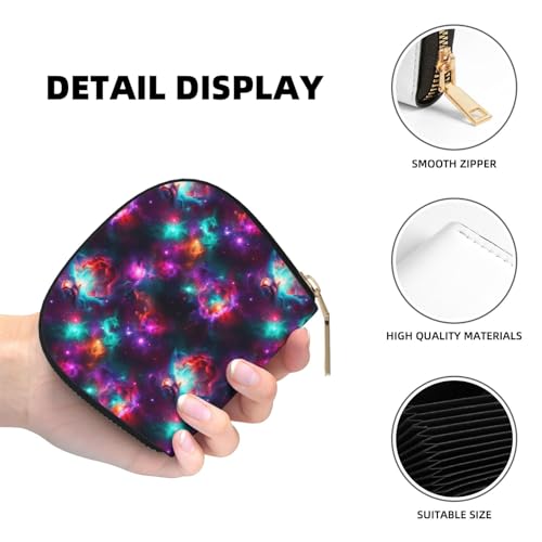 Clouds Galaxy Purple Blue Leather Credit Card Holder Zipper Wallet for Unisex 6