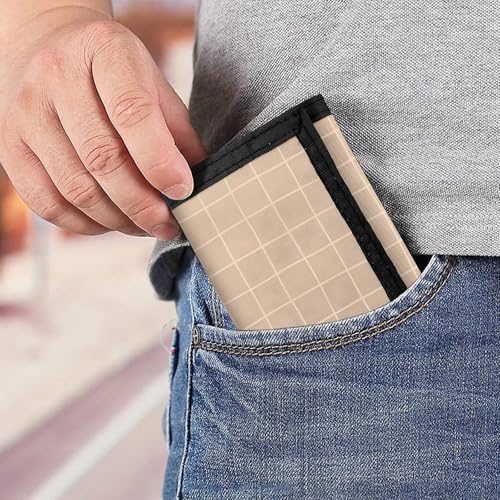 • Design: Featuring a versatile trifold design, this men's wallet includes a front zipper compartment for quick access to essentials. Inside, there are spaces dedicated for ID cards, cards, and changes. The inclusion of a keychain allows you to carry your keys effortlessly, making it a Brown Hand Drawn Grid Print simple wallet for men that's all about practicality