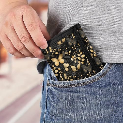 • Size: Our Black And Gold Butterfly Print men wallet has a compact dimension of 5x3.3x0.2 inches, striking the perfect balance between utility and convenience. This small wallet for men is designed to fit comfortably in your pocket, providing easy access on-the-go without the bulk