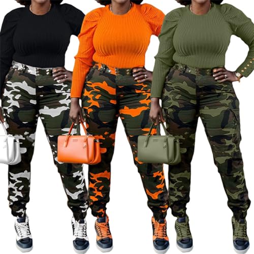 HOT ! Womens Camo Cargo Pants, Camouflage Pants Women, Women Camo Camouflage Cargo Pant (Camouflage Black, L)