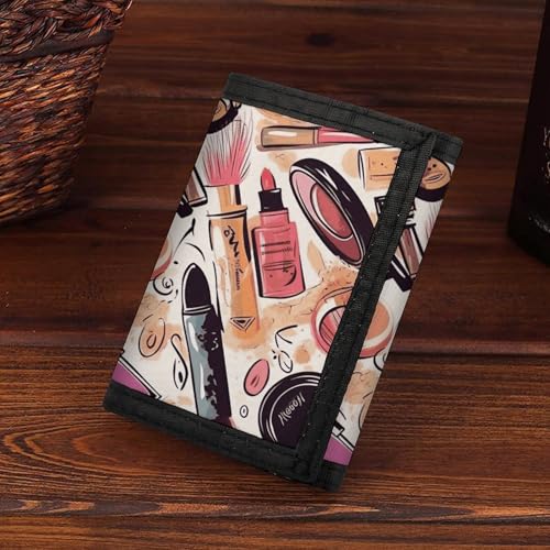 HOT ! Cosmetic And Makeup Theme Pattern Trifold Wallet for Men - Money Clip Slim Wallets with Multiple Card Slots Minimalist Small Front Pocket Wallet for Everyday Carry