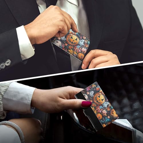 KLL Halloween Pumpkin Ultra-Thin Pocket Business Card Holder with Leather and Stainless Steel Card case Holder for Protects Your Cards tarjetero para Hombre 6