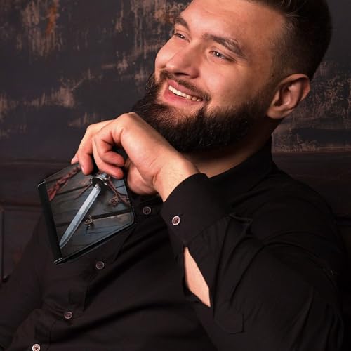 Men's Leather Wallet Bifold Wallet for Men Japan Samurai Sword Slim Wallet with Multiple Card Classic Passcase Mens Card Holder 7