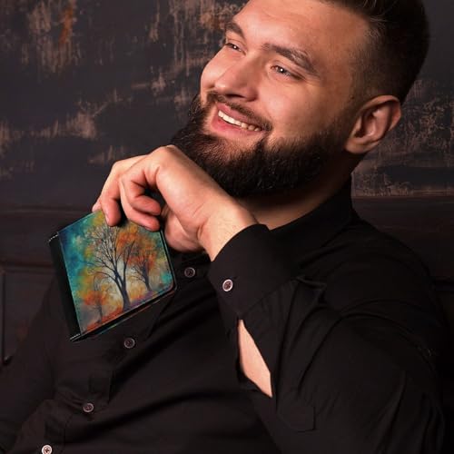 Men's Leather Wallet Bifold Wallet for Men Colorful Life Trees Slim Wallet with Multiple Card Classic Passcase Mens Card Holder 7