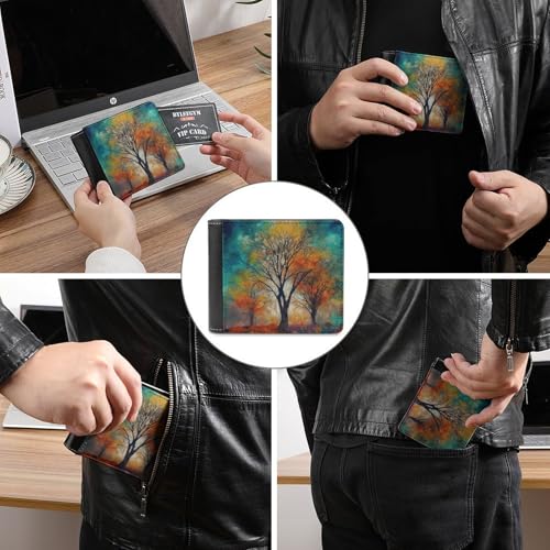 HOT ! Men's Leather Wallet Bifold Wallet for Men Colorful Life Trees Slim Wallet with Multiple Card Classic Passcase Mens Card Holder
