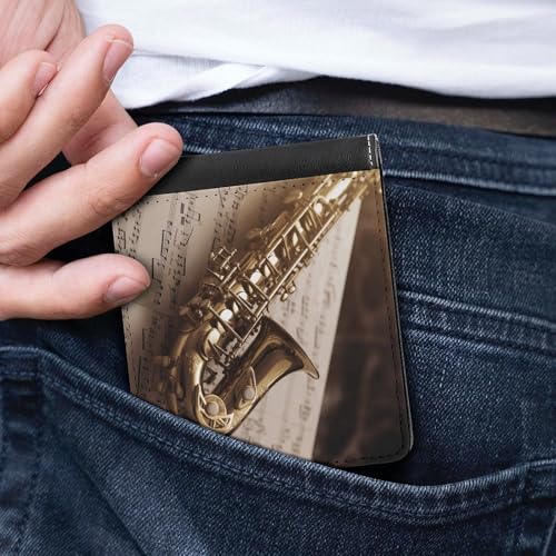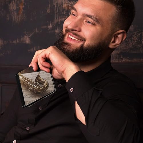 HOT ! Men's Leather Wallet Bifold Wallet for Men Saxophone on Sheet Music Slim Wallet with Multiple Card Classic Passcase Mens Card Holder