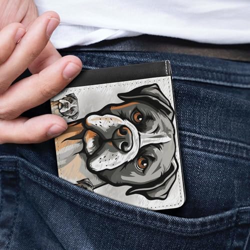 Men's Leather Wallet Bifold Wallet for Men American Bulldog Head Slim Wallet with Multiple Card Classic Passcase Mens Card Holder 5