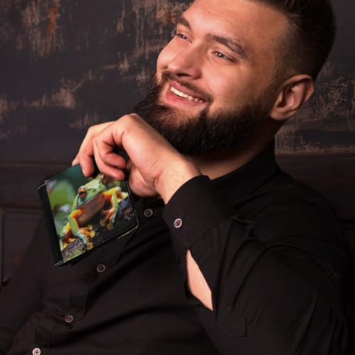 Men's Leather Wallet Bifold Wallet for Men Lovely Tree Frogs Slim Wallet with Multiple Card Classic Passcase Mens Card Holder 6
