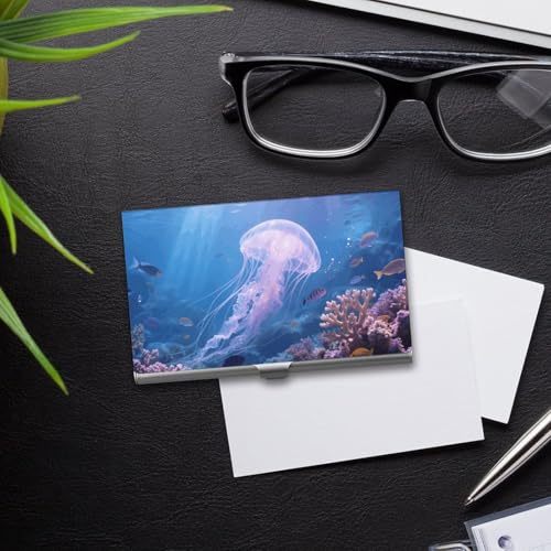• 【Premium Metal Construction】Crafted from durable, anti-fading aluminum alloy, this Jellyfish Swimming metal business card holder offers a smooth, comfortable feel and a secure clasp that won't open accidentally.