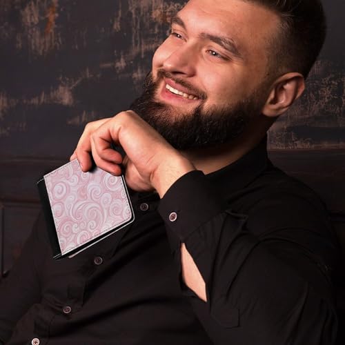 Pink And White Swirls Soft PU Leather Bifold Wallet, Coin Purse Credit Pass Case, Durable Card-Holder Slim Billfold for Men Woman Money Storage 7
