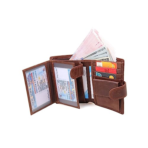 More information about Beaupretty Genuine Leather Bifold Wallet for Men Capacity Multi Card Holder Retro Casual Purse Coffee Color Credit Card Coin Cash Organizer