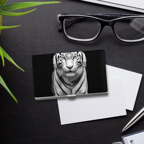 • 【Premium Metal Protection】Crafted with aerospace-grade aluminum alloy, this Black And White Tiger business card holder features scratch-resistant matte finish & reinforced corners to safeguard cards from drops, bending, and daily wear.