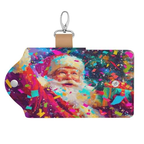 Happy Santa Claus Key Holder Bag PU Leather ID Card Holder Keychains Case Cover for Men Women 6