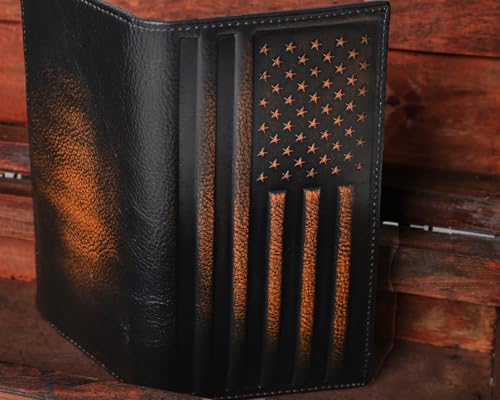 DK86 USA Flag Long Wallet For Men Full Grain Leather with Hand Burnished Rfid Blocking Rodeo Wallet Bifold Wallet American Flag Wallet 3