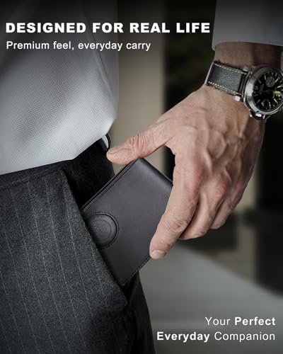 • RFID Blocking Protection – Equipped with advanced RFID-blocking technology, this wallet safeguards your credit cards, debit cards, and ID from unauthorized scanning and electronic theft, ensuring your personal information stays secure.