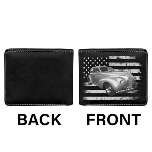 HOT ! Hot Rod Classic Vintage Car Personalized Photo Printed Leather Men Bifold Wallet, Unique Custom Gift For Car Guys, Drag Racers, Street Rat Rod Owners, Muscle Car Gift For Him (BK5-Grayscale)
