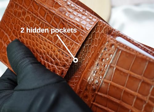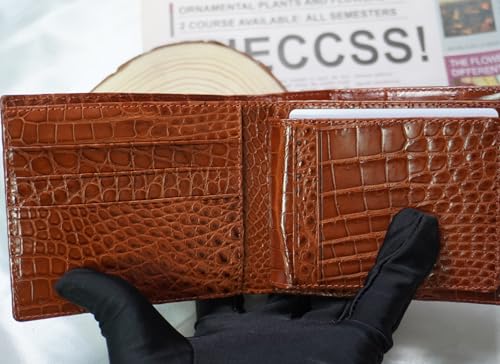 Genuine Crocodile Alligator Leather Skin Men Bifold Wallet With ID Sleave (Cognac-Belly) 4