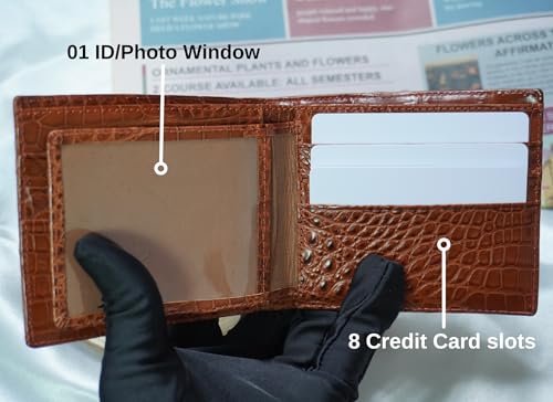 • Measurement: With dimensions of just 4.5 inches x 3.5 inches (11.5cm x 9cm) when closed, this croc wallet features 8 Card slots, 2 secret hidden pockets and 2 cash compartments and 01 ID Flap. The compact design makes this wallet a perfect companion whether used for travel, daily use, or work. Suitable to carry in the front or back pockets.