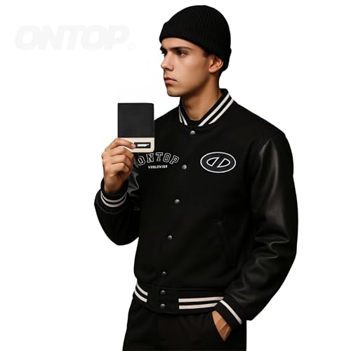 ONTOP Vertical Bifold Wallet, Minimalist Card Holder, Ultra Lightweight, Water Resistant, Unisex (Light Beige/Black) 1
