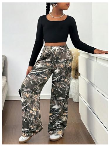 • Feature: Girls casual pants, drawstring waist, pocket, straight leg, camouflage print, loose fit, with a fashionable style, easy to pair with your camisole tank top or tee shirts crop tops