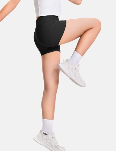 JOCMIC Girls Athletic Shorts Kids Dance High Waisted Yoga Short for Bike Gym Volleyball Running 3