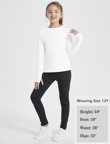 EXARUS Girls Long Sleeve Shirts Athletic Quick Dry Tops Performance Tees UPF 50+ with Pockets Thumb Holes Workout Teens 6