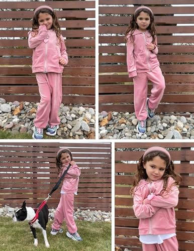 • WARM FABRIC:Girls sweatsuits with a buttery-soft texture similar to velvet, lend a luxurious sheen to fashion look. Stretchy and drape, velour outside only, promise cozy wear all day